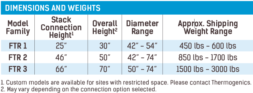 | Trim Options and Upgrades | • Modulating Dew Point Control Damper. • Mating/Transition Flange for field-matching to stack. • Flue Gas Stack Extension. • NPT standard or optional Flanged Inlet/Outlet Connection • Optional Stainless Steel Wrapper Sheets. • An integrated Thermiser Heat Recovery unit is available for new Thermocoil boilers if there is a restriction on installation space. |